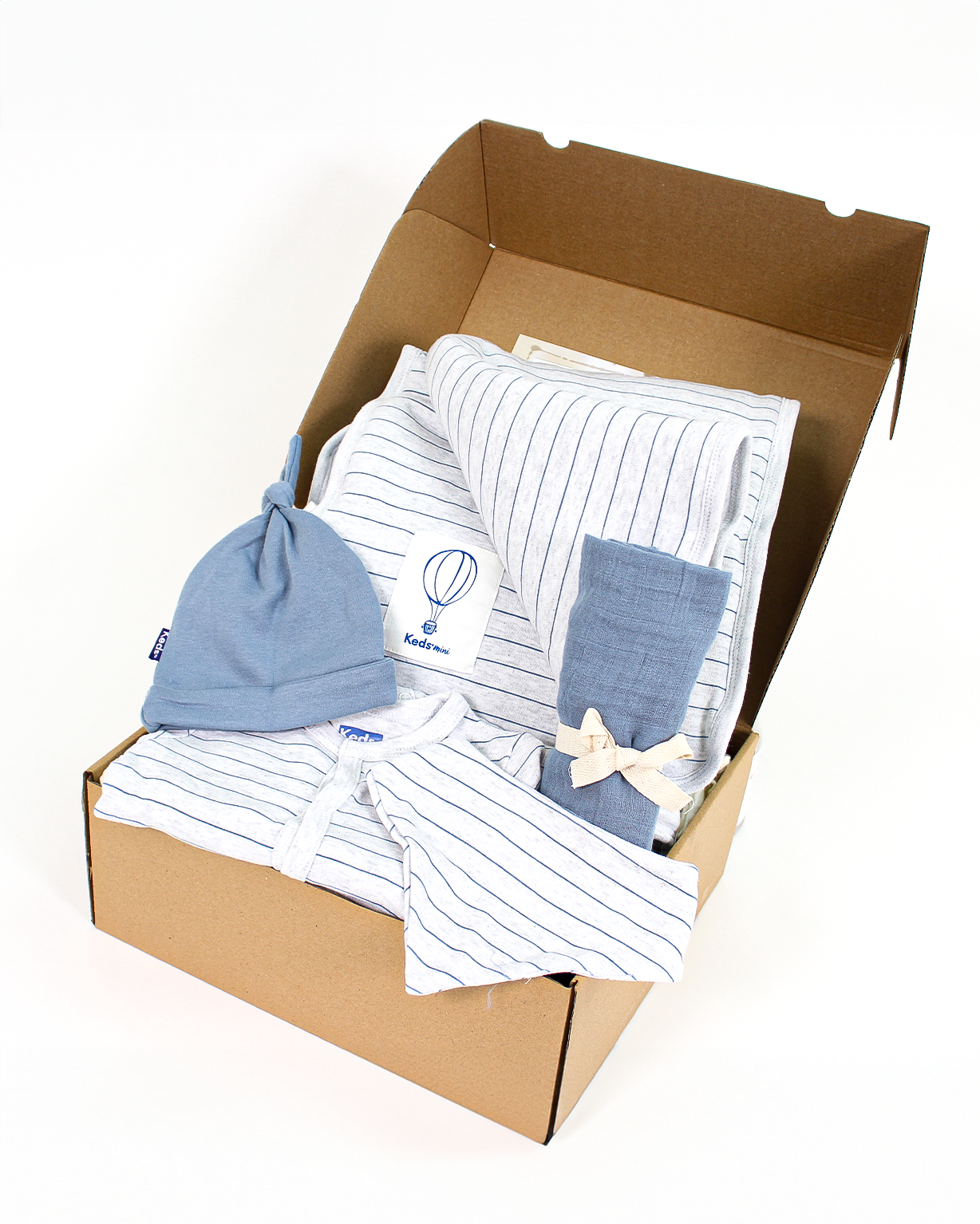 תכולת המארז: אוברול שרוול ארוך עם רגלית, שמיכה נעימה עם מילוי בגודל 80x80, חיתול טטרה 70x70 , סינר , כובע.